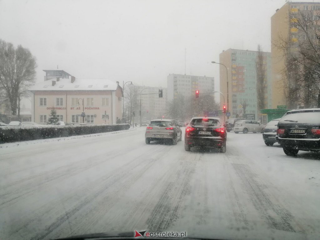 Zgodnie z prognozami synoptyków, dziś nad Ostrołękę i region nadciągnęły intensywne opady śniegu. Całe miasto spowite jest białym puchem. Kierowcy muszą zmagać się z fatalnymi warunkami na drogach w całym regionie. Zachowajcie ostrożność.