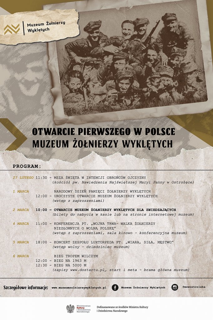 W marcu oficjalnie otwarte zostanie Muzeum Żołnierzy Wyklętych w Ostrołęce. W programie rozciągniętych na kilka dni uroczystości zaplanowano m.in. koncert zespołu Luxtorpeda.
