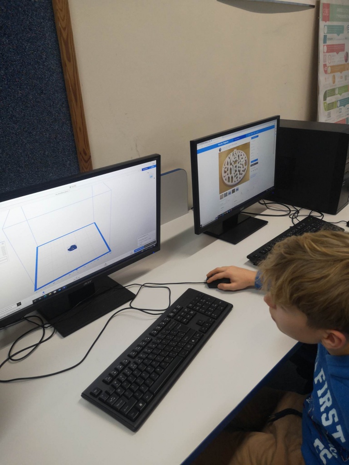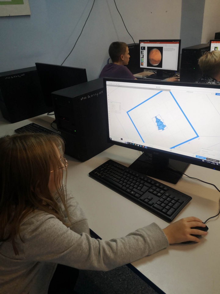 Na zajęciach informatyki w SP 10 uczniowie pod opieką Joanny Karwel projektowali i drukowali za pomocą drukarki 3d ozdoby świąteczne w ramach projektu Laboratoria Przyszłości. Wydrukowane ozdoby trafiły później na choinkę, która zdobi korytarz tej placówki.