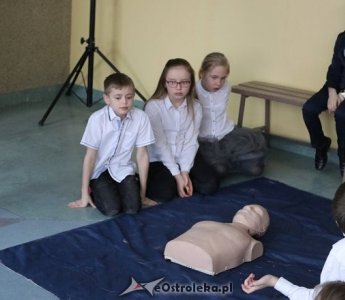 Akcja pt. "Pamiętaj koniecznie, ferie spędzaj bezpiecznie" zorganizowana została nieprzypadkowo właśnie w tym terminie, bowiem dziś jest ostatni dzień nauki przed dwoma tygodniami odpoczynku zimowego. Uczniowie z klas IIIa i IIIb zaprezentowali przedstawienie tematyczne, prelekcję wygłosił policjant z KMP Ostrołęka, a następnie odbyło się spotkanie z ratownikami WOPR-OS, na którym uczono dzieci z oddziałów 0-III udzielania pierwszej pomocy przedmedycznej.