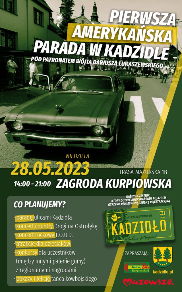 28 maja w Kadzidle odbędzie się pierwsza amerykańska parada. Fani motoryzacji zza oceanu będą mogli podziwiać niesamowite krążowniki szos. To nie koniec atrakcji.