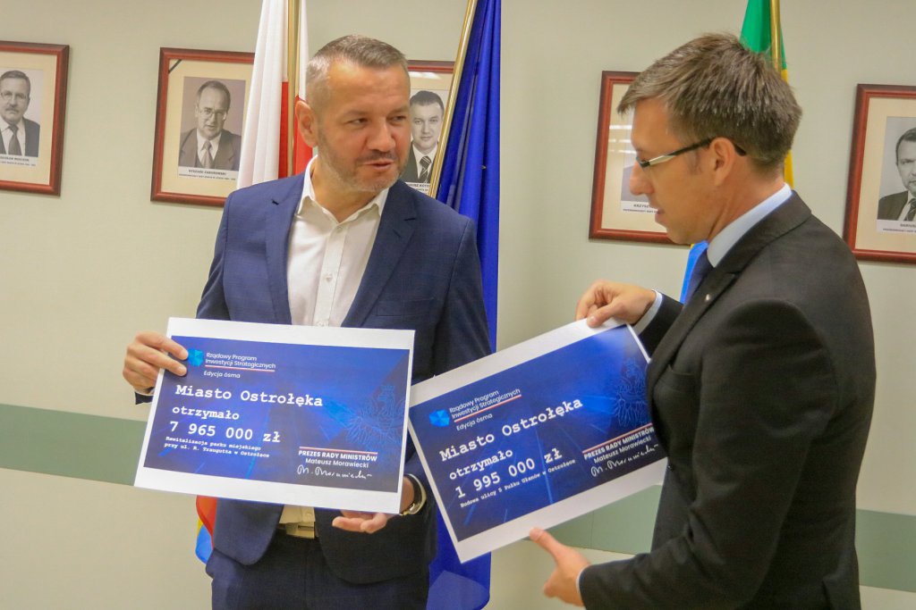 - Cieszę się, że takie fundusze trafiły do naszego kochanego miasta Ostrołęki. Gratuluję panu prezydentowi i życzę udanej realizacji - powiedział Marcin Grabowski podczas krótkiej uroczystości wręczania czeków w ostrołęckim ratuszu.