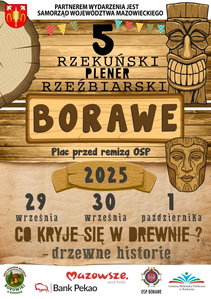 Gmina Rzekuń zaprasza na wyjątkowe wydarzenie, które po raz piąty zgromadzi miłośników sztuki i natury. W dniach 29 września – 1 października 2025 roku w Borawe, na placu przed remizą OSP, odbędzie się 5. Rzekuński Plener Rzeźbiarski pod hasłem „Co kryje się w drewnie? - drzewne historie”.