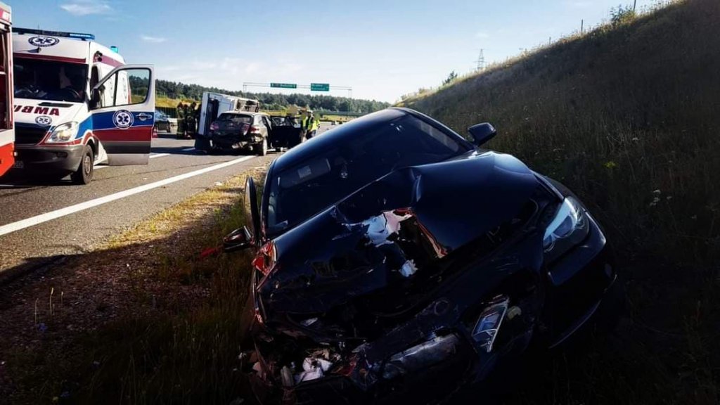 Ze wstępnych ustaleń policjantów drogówki wynika, że 23-letni kierowca z Zambrowa nie dostosował prędkości do warunków panujących na drodze i uderzył w tył przyczepy kempingowej ciągniętej przez toyotę. W wyniku uderzenia kierujący toyoty stracił panowanie nad zespołem pojazdów i uderzył w bariery energochłonne rozdzielające jezdnie. Natomiast kierowca BMW swoją podróż zakończył w rowie.