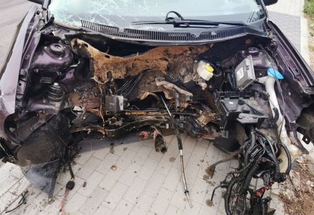 Przeprowadzanie badanie na zawartość alkoholu wykazało, że 37-latek kierował osobówką w stanie nietrzeźwości, mając w swoim organizmie blisko 2,5 promila. Mężczyzna nie jechał sam. Obok niego siedziała 38 – letnia kobieta, mieszkanka Turzyna, która była równie nietrzeźwa. Oboje z obrażeniami zostali przetransportowani do szpitala. Policyjne czynności wykazały, że mieszkaniec Rząśnika był już wcześniej karany za jazdę „na podwójnym” gazie i posiada sądowy zakaz prowadzenia pojazdów mechanicznych.