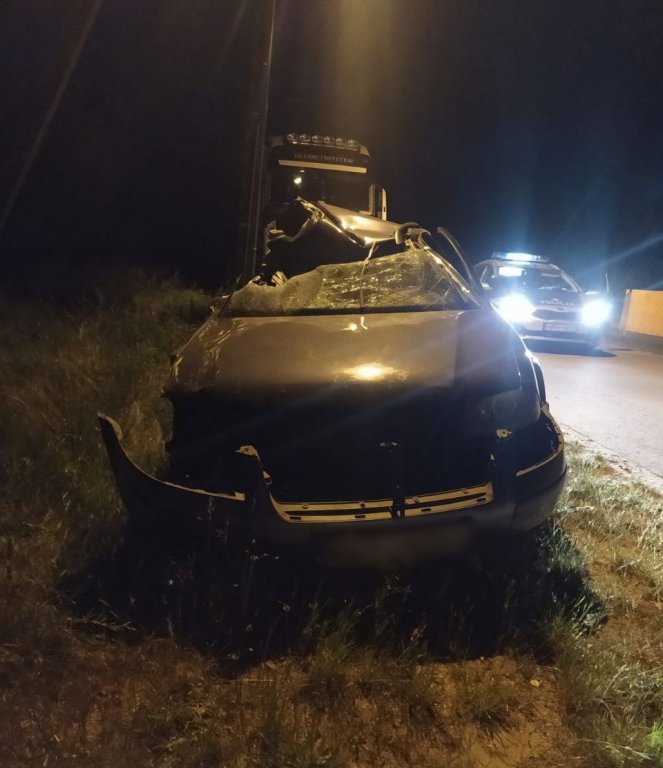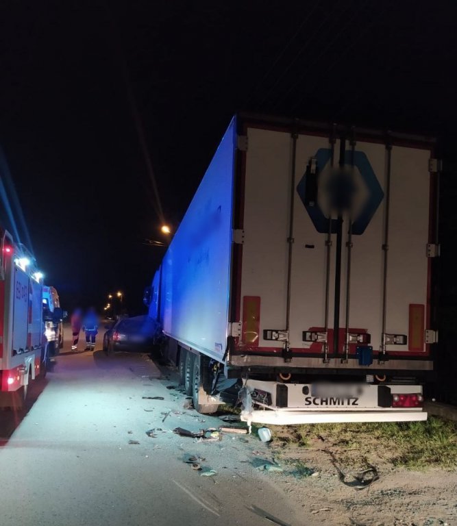 Miał ponad 3 promile alkoholu w organizmie, a dodatkowo kierując autem zapatrzył się w telefon, przez co nie zauważył stojącej na poboczu ciężarówki. Auto 27-latka wbiło się pod naczepę.