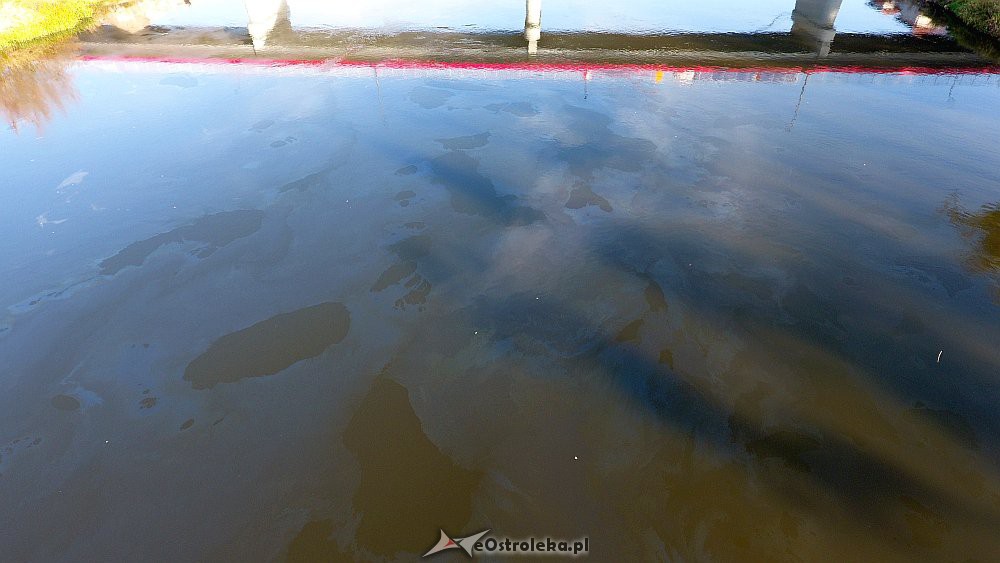 Świadkowie obserwujący plamę oleju informują nas, że rozciąga się ona na dystansie od okolic mostu kolejowego w kierunku zakładów Story Enso i ostrołęckiej elektrowni.