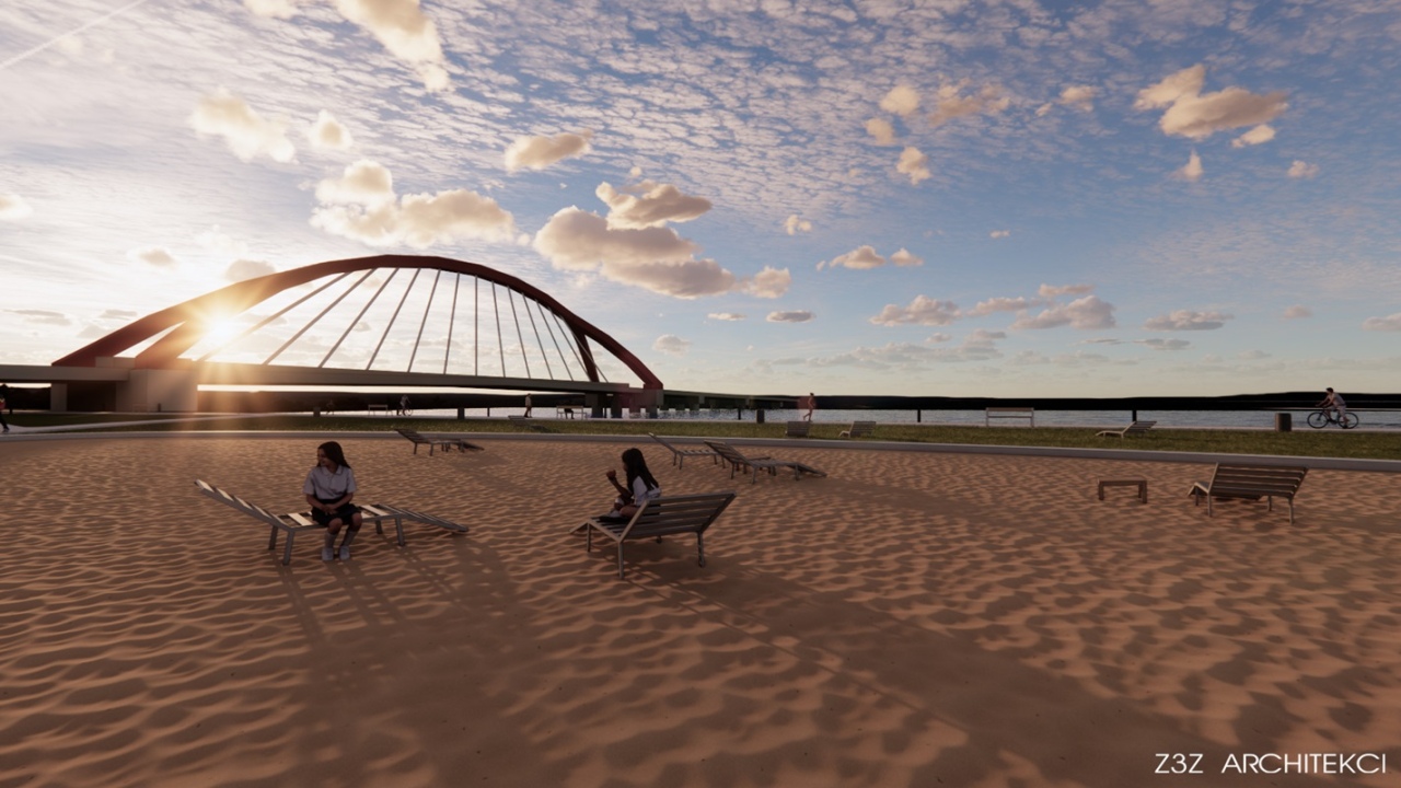 Projekt zakłada kompleksowe zagospodarowanie terenu między mostami im. Madalińskiego i Wyszyńskiego w Ostrołęce. W ramach inwestycji powstaną nowoczesne bulwary z oświetleniem, sztuczna plaża, miejsca do gier i zabaw – w tym boisko do piłki plażowej – oraz liczne strefy odpoczynku.