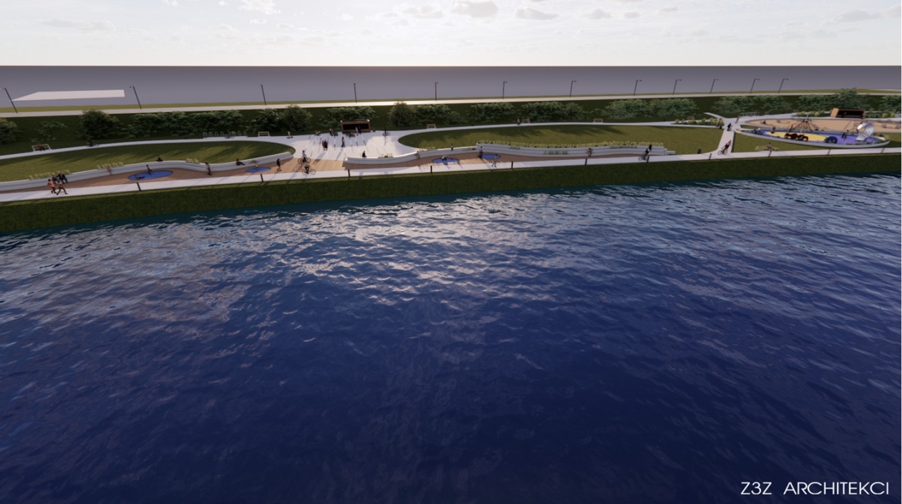 wizualizcje projektu zagospodarowania nabrzeża Narwi między mostami