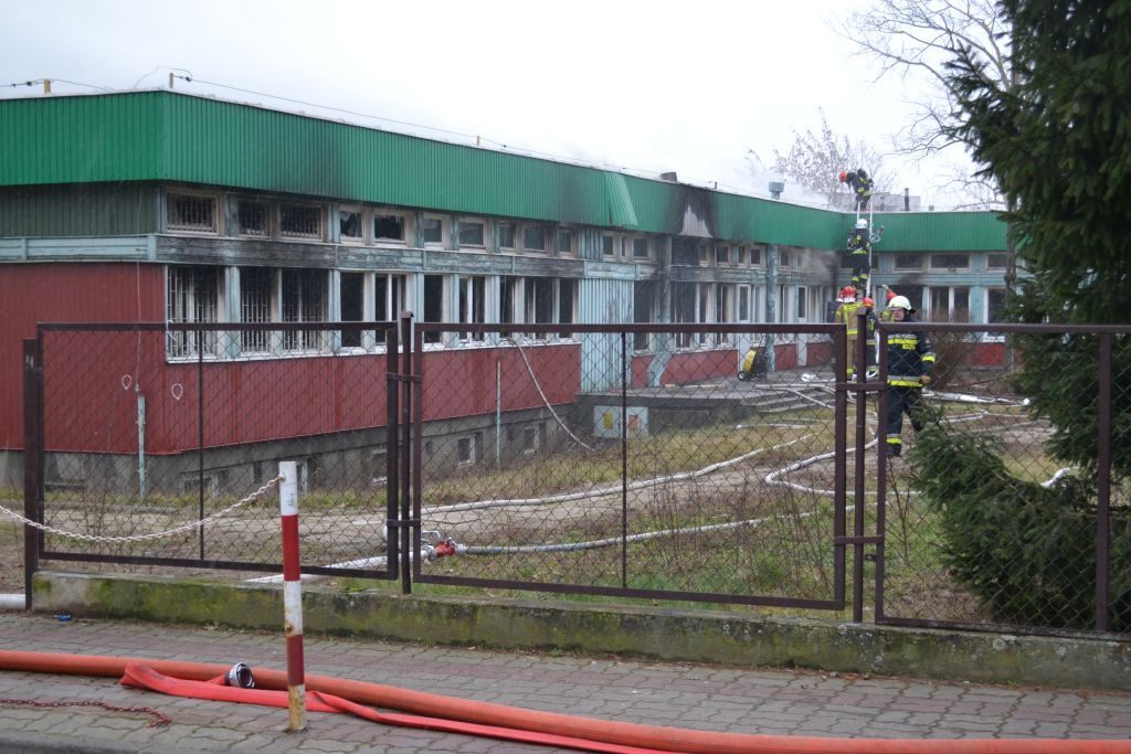 Pożar zgłoszono około godziny 8:00. Na miejscu wciąż pracują jednostki straży pożarnej, w sumie w akcji gaśniczej udział bierze około 15 zastępów państwowej i ochotniczej straży pożarnej. Wiadomo już, że budynek jest doszczętnie zniszczony. Mimo błyskawicznej reakcji służb ratunkowych, ogień rozprzestrzenił się wewnątrz budynku i na wielowarstwową konstrukcje dachu.