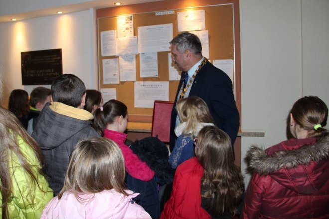 fot. ostroleka.plPodczas wizyty w ratuszu dzieci dowiedziały się na czym polega rola Rady Miasta i z ilu radnych się składa, jak wyglądają sesje i posiedzenia komisji. Poznali w skrócie historię miasta opowiedzianą przez pryzmat wydarzeń, ważnych dat ale również poprzednich prezydentów oraz radnych. Dzieci zadawały również pytania – czy urzędnicy miewają odważne pomysły albo jak założyć własną firmę.
