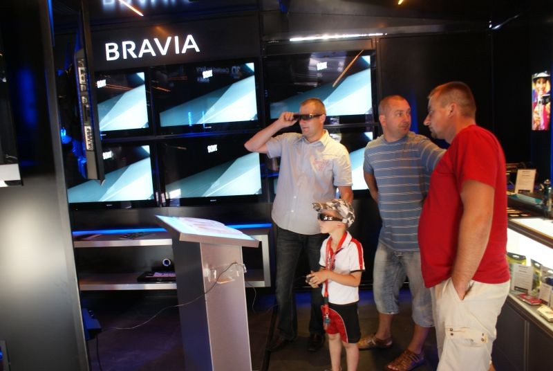 Dzisiaj na dużym parkingu przy Handlowcu firma Sony wraz z Media Exeprt organizuje pokaz swojego sprzętu. Promocja największy nacisk kładzie na wypromowanie najnowszej technologii: telewizorów 3D i odtwarzaczy 3D. Na pokazie można było obejrzeć krótkometrażowe filmiki w specjalnym kinie 3d. Firma zaprezentowała także aparaty, kamery i telewizory 3d wraz z okularami. Efekt telewizorów jest niesamowity, niestety przeciętnego klienta może wystraszyć wysoka cena. Na pokazie prezentowane są również inne sprzęty firmy Sony.