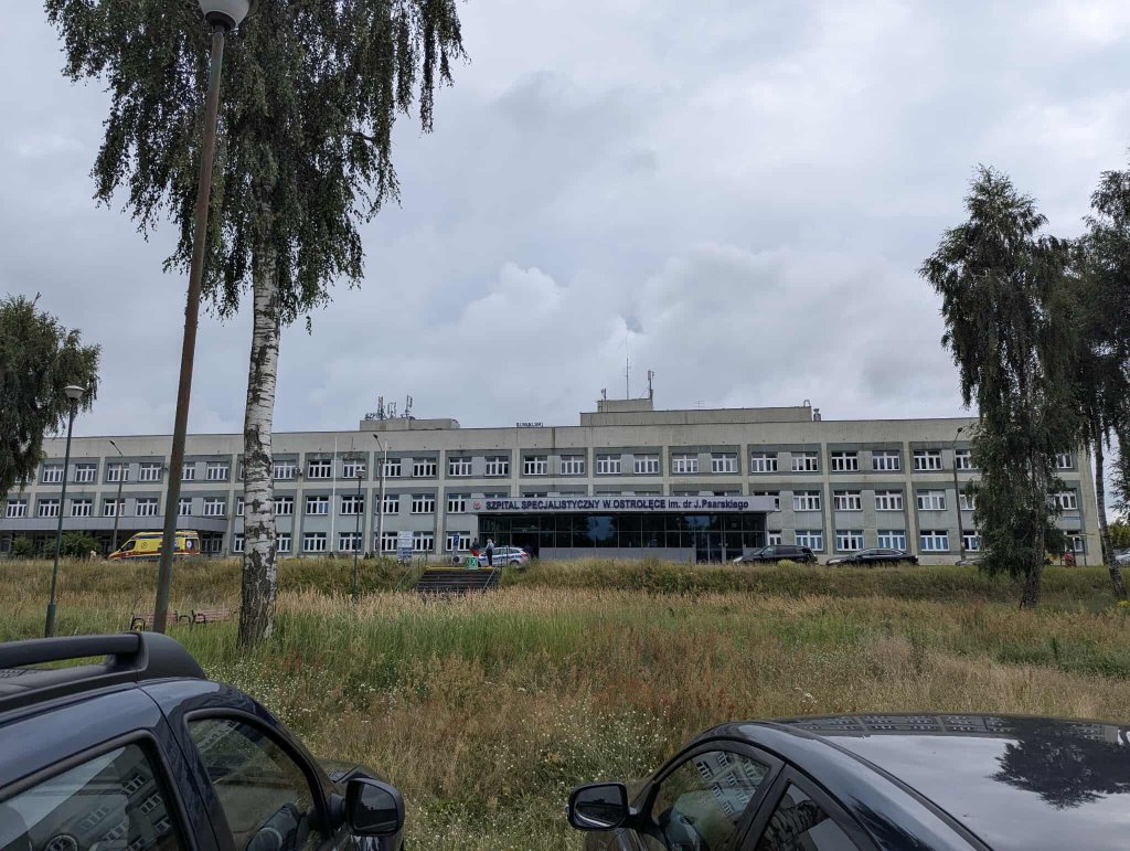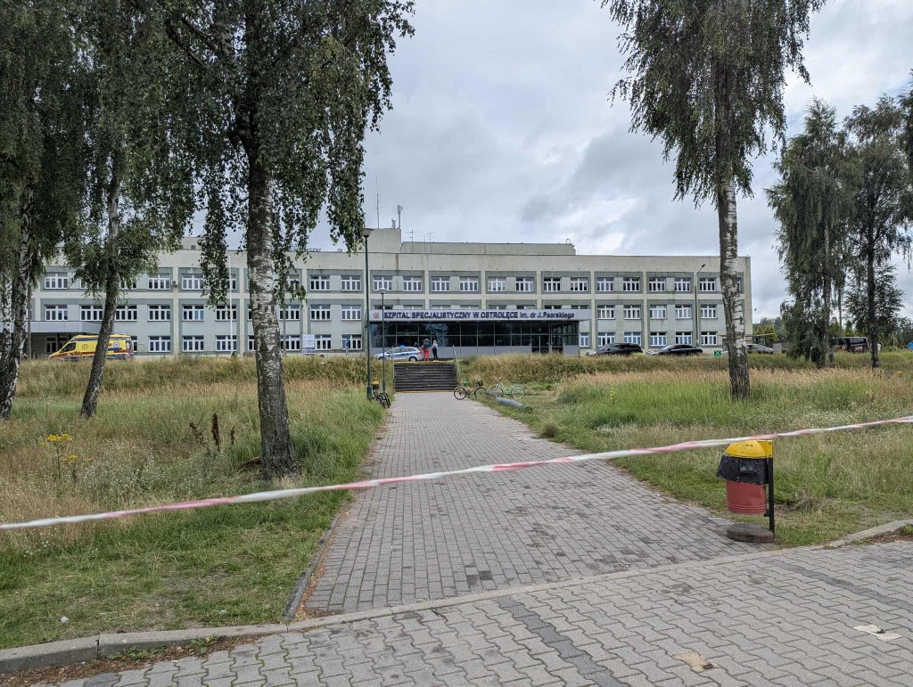 Odwiedzający pacjentów w ostrołęckim szpitalu w sobotę 19 lipca muszą liczyć się z poważnymi utrudnieniami. Przy wejściu stoi policja, czekają też wolontariusze.