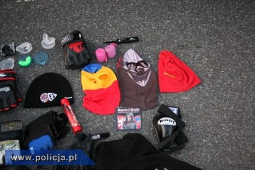 Akcesoria ujawnione w zatrzymanych pojazdach potwierdziły wcześniejsze ustalenia kryminalnych. Bagażniki wypełnione były rękawicami do walk, ochraniaczami na zęby i genitalia, kominiarkami i racami. Ta grupa nie wykazywała już zainteresowania runem leśnym, a jako powód odwiedzin naszego kraju wskazywała wspólną zabawę z kibicami Widzewa.