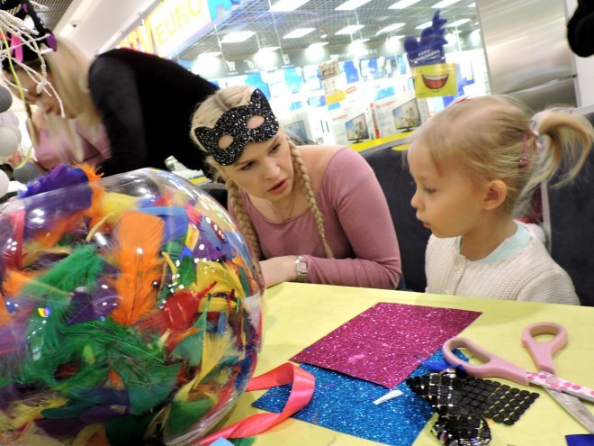 Zdobienie masek i koron karnawałowych, czyli przyklejanie i układanie oryginalnych kompozycji z cekinów, wstążek, piórek oraz innych błyszczących ozdób, to jest to, co dzieci uwielbiają najbardziej. Taką atrakcję przygotowaliśmy dla najmłodszych z okazji półmetka ferii zimowych.