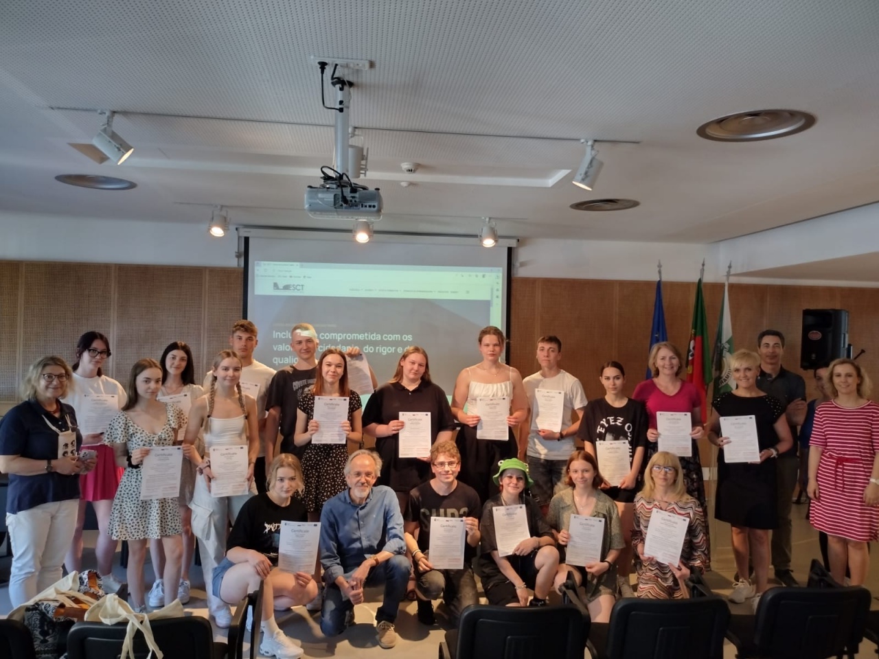 Podczas pobytu w szkole mieliśmy możliwość poznania jej struktury organizacyjnej, zaplecza administracyjnego, wyposażenia, bazy sportowo-rekreacyjnej, a nawet ogródka warzywnego prowadzonego przez młodzież. Nasi uczniowie wraz z opiekunami uczestniczyli również w zajęciach dydaktycznych. Mieliśmy okazję obserwować, jak wygląda praca z uczniem dysfunkcyjnym, a także zwiedzić jedno z miejsc odbywania praktyk przez uczniów, tj. Term w Caldas das Taipas – Guimaraes. Miejsce to w swojej ofercie posiada różnorodne zabiegi lecznicze, pielęgnacyjne oraz relaksacyjne. Bardzo ważnym punktem naszej wizyty w szkole przyjmującej była integracja młodzieży i przełamywanie barier językowych. Podczas spotkań uczniowie mieli możliwość wzajemnego poznania kultury i obyczajowości swoich krajów, wymiany doświadczeń, jak również nawiązania nowych znajomości i przyjaźni. Zarówno uczniowie portugalscy, jak i polscy zaprezentowali przed społecznością szkolną najważniejsze informacje dotyczące szkół, historii i kultury danego kraju. Prezentowaliśmy Polskę, Kurpie, nasze miasto, wspomnieliśmy także o jubileuszu 650-lecia nadania praw miejskich Ostrołęce. Było miejsce na wspólną zabawę i śpiew. Młodzież śpiewała najpopularniejsze hity swojego kraju oraz przedstawiała przysmaki regionalne i miejscowe, a także zabytki i kulturę. Uczniowie uczestniczyli także aktywnie w zajęciach szkolnych, a po lekcjach grali w gry zespołowe i rysowali ściankę.