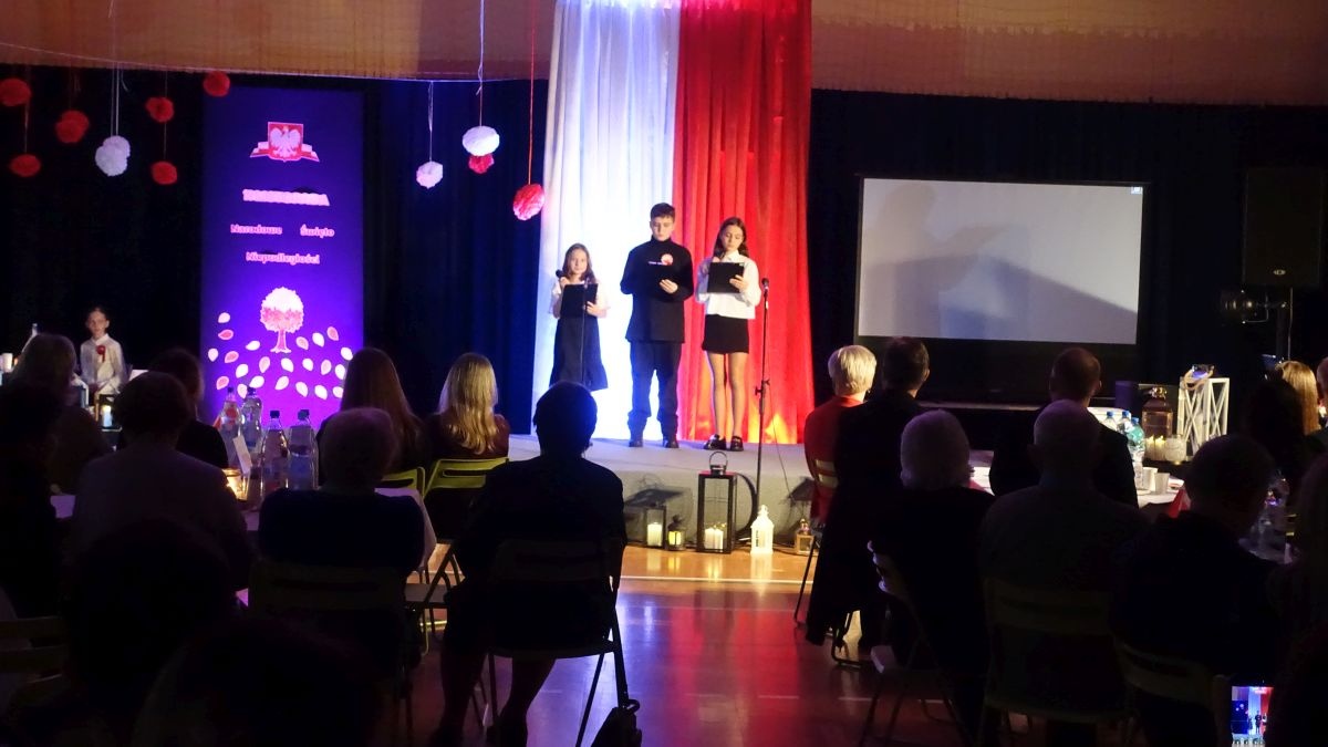 Kluczowym punktem wieczoru był przejmujący montaż słowno-muzyczny przygotowany przez uczniów szkoły. Blask świec i piękna dekoracja sceny stworzyły niezwykły nastrój zadumy.