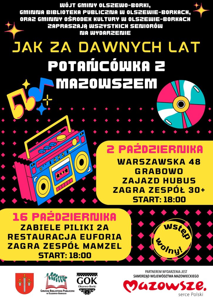 Nadchodzi wyjątkowa okazja dla wszystkich seniorów spragnionych dobrej zabawy! Gmina Olszewo-Borki organizuje cykl niezapomnianych potańcówek pod hasłem "Jak za dawnych lat – Potańcówka z Mazowszem!". To idealny moment, by odkurzyć taneczne buty, wrócić wspomnieniami do najlepszych lat, spotkać się ze znajomymi i spędzić wieczór przy muzyce na żywo.