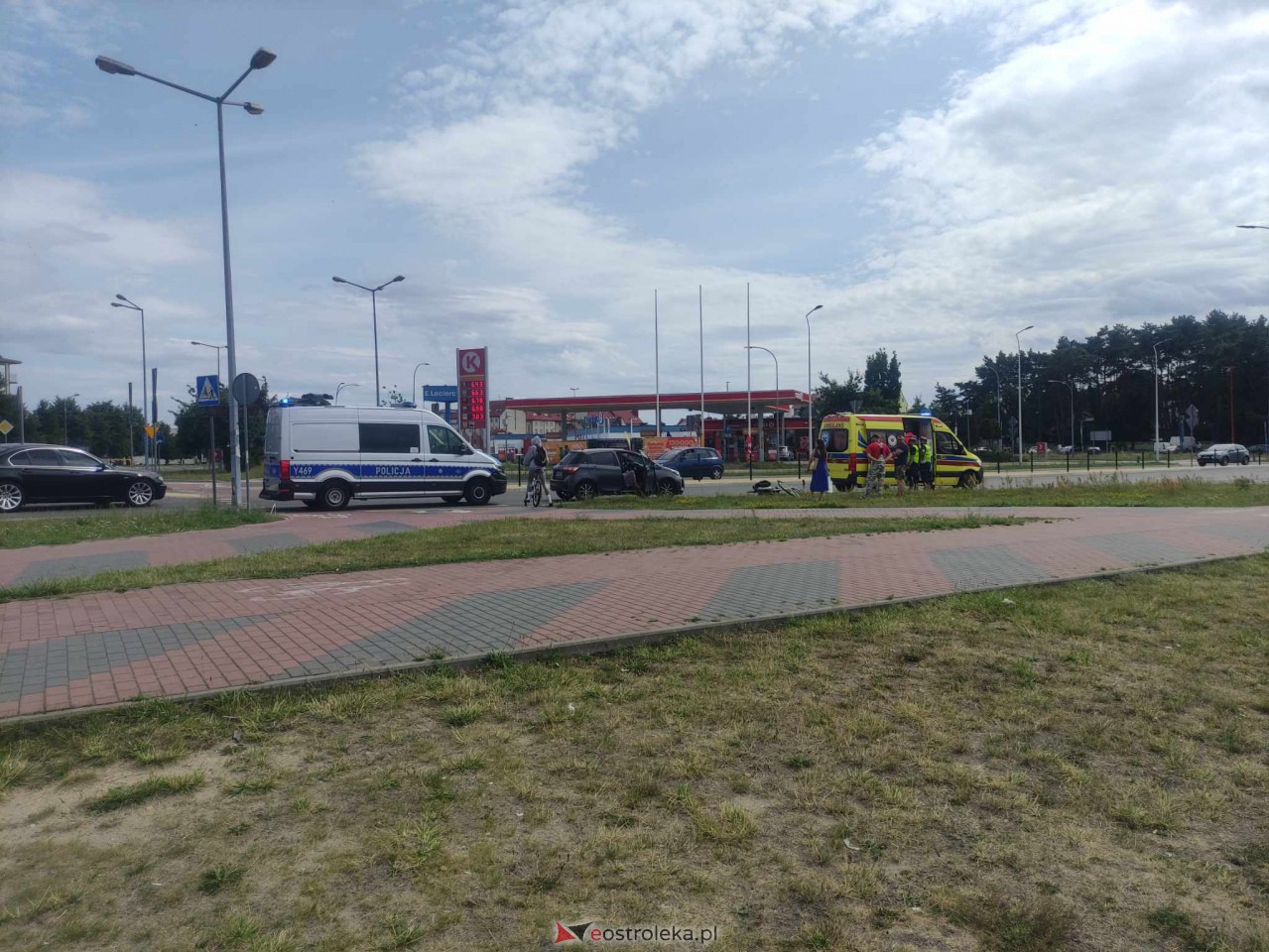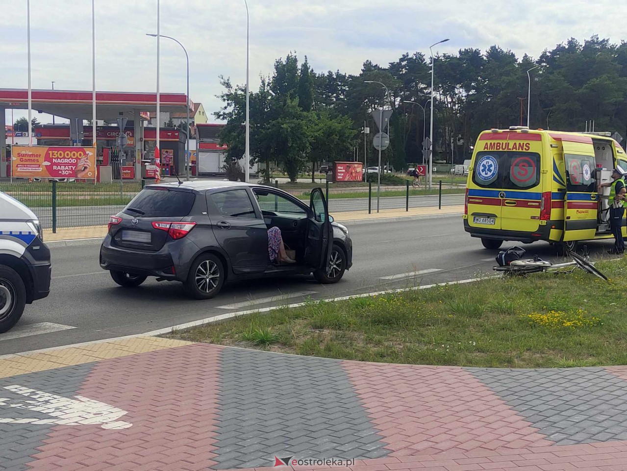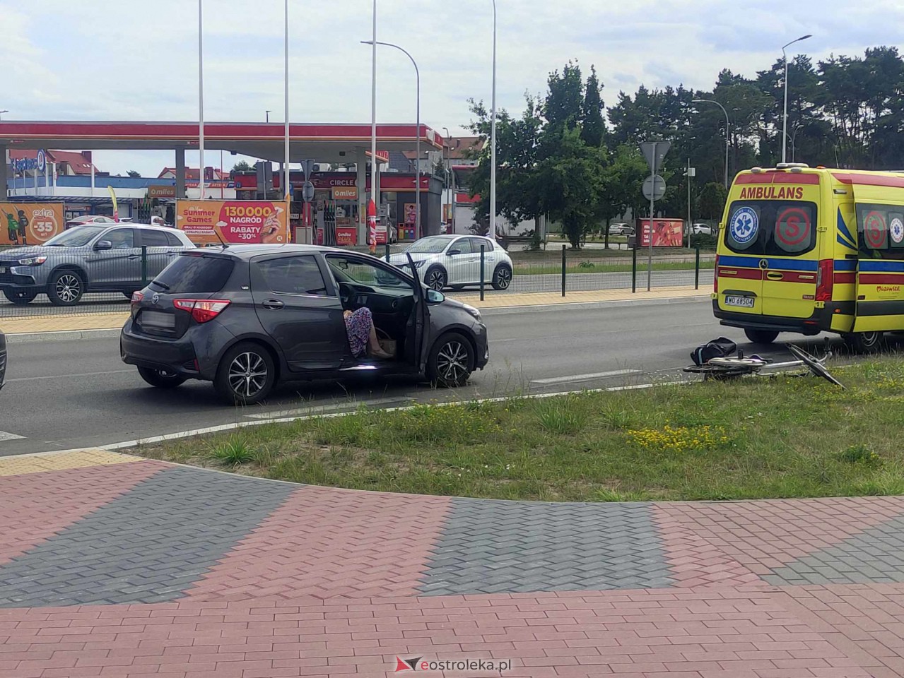 Na rondzie Zbawiciela Świata w Ostrołęce doszło do wypadku. Pod koła osobówki dostała się rowerzystka.