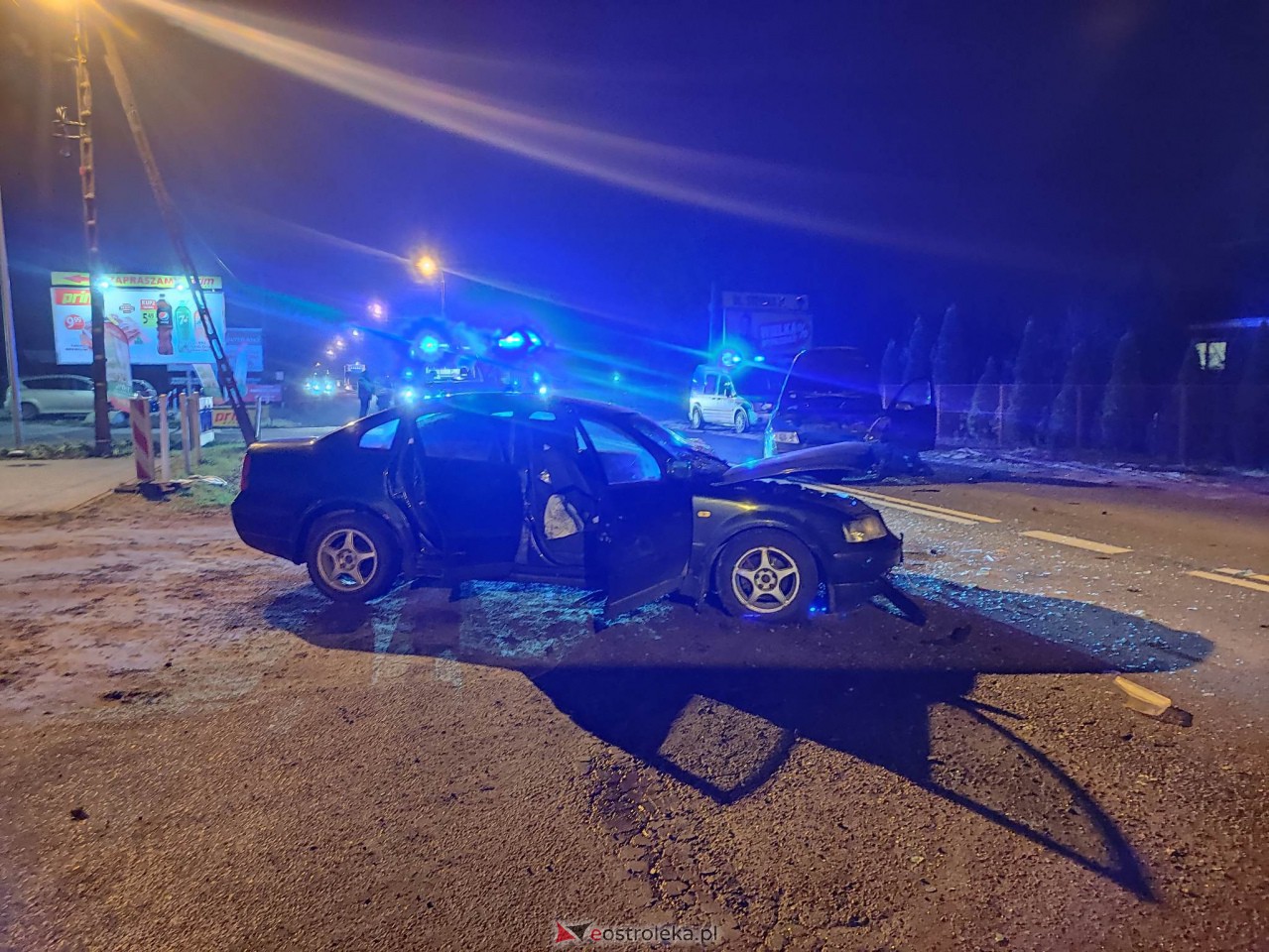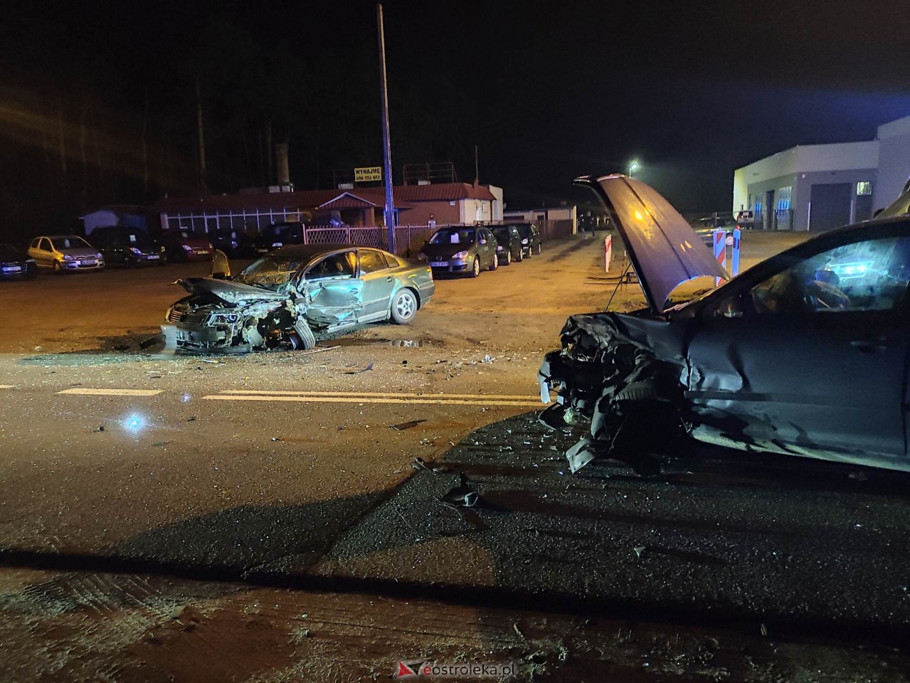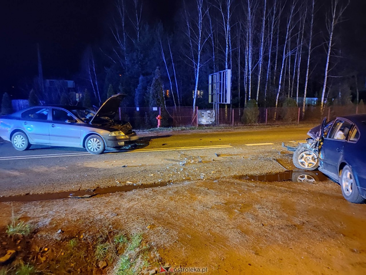 W czołowym zderzeniu skody i vw, do którego doszło na drodze wyjazdowej z Ostrołęki w kierunku Warmii i Mazur ucierpiała jedna osoba. Medycy zdecydowali o przewiezieniu jej do szpitala.