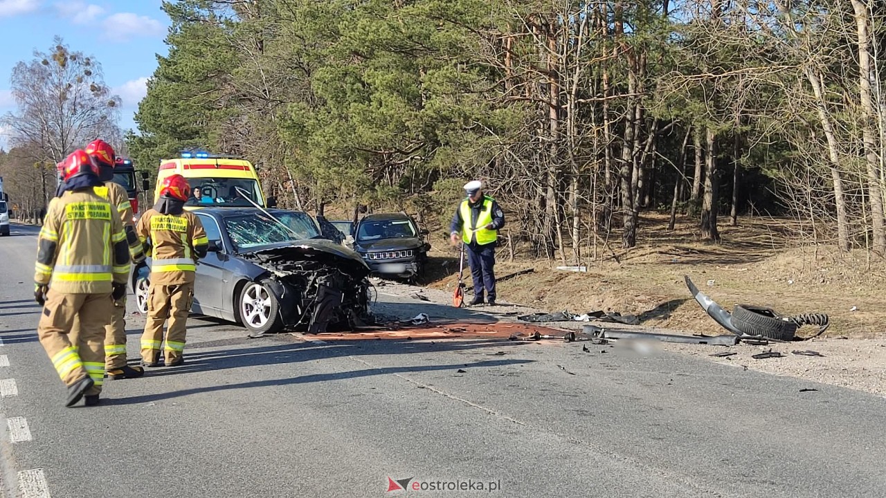 Z policyjnych ustaleń wynika, że do BMW i Jeep zderzyły się czołowo, a do wypadku doprowadził 28-latek kierujący niemieckim sedanem. Młody Ostrołęczanin nieprawidłowo wykonał manewr wyprzedzania dostawczego Lublina, którego kierujący skręcał z drogi głównej po posesję. Po zderzeniu Jeep wpadł do przydrożnego rowu.