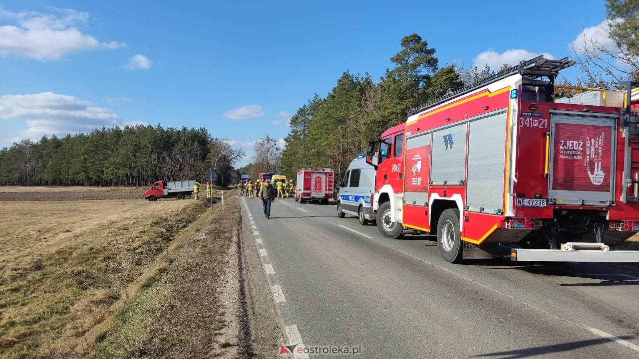 Około godziny 14:00 dyżurny stanowiska kierowania otrzymał zgłoszenie o wypadku na popularnej trasie prowadzącej w kierunku Mazur. Na miejsce natychmiast zadysponowano zastępy straży pożarnej, zespoły ratownictwa medycznego oraz policję.