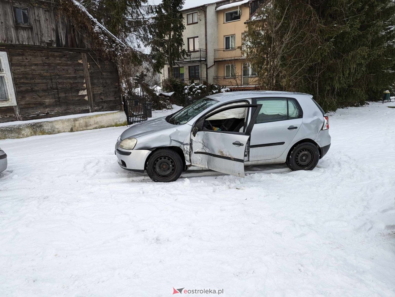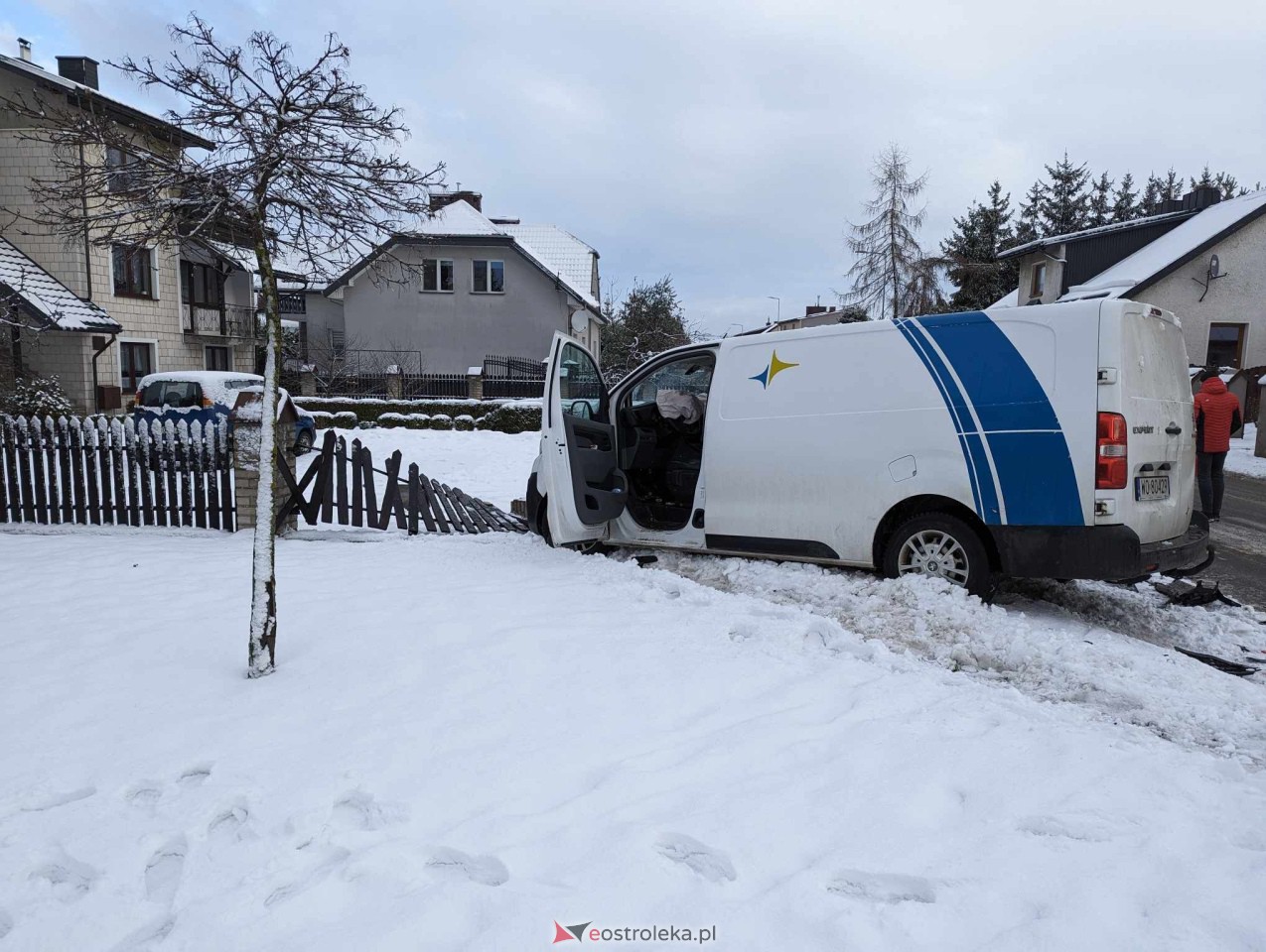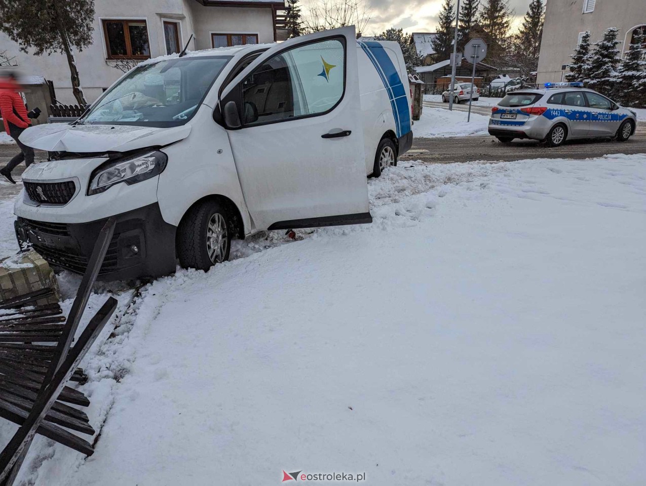 Do wypadku doszło przed godziną 11:00 w poniedziałek, 15 stycznia przy ulicy Pomian w Ostrołęce. Jest to droga wyjazdowa z miasta w kierunku miejscowości Dzbenin. W zderzeniu udział brały dwa auta - bus i osobówka. Ten pierwszy pojazd wpadł w poślizg i uderzył w ogrodzenie oraz ściął znak stojący przed przejściem dla pieszych.