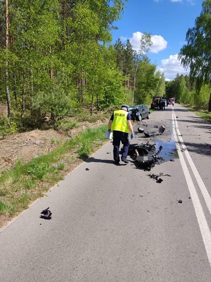 Policjanci pracujący na miejscu zdarzenia ustalili, że kierujący motorem marki Yamaha, jadąc z Czerwonki w kierunku Gut Dużych, na łuku drogi stracił panowanie nad pojazdem, zjechał na przeciwległy pas ruchu i zderzył się z jadącym z naprzeciwka vw golfem.