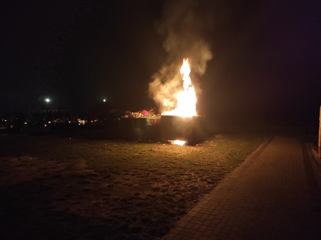 Ogień pojawił się w jednym z kontenerów na śmieci. Pożar został prawdopodobnie spowodowany przez nieostrożną osobę, która wrzuciła tlący się jeszcze znicz lub inny niedopałek do wypełnionego odpadami kontenera. Na miejscu interweniował zastęp straży pożarnej. Ogień udało się szybko opanować.