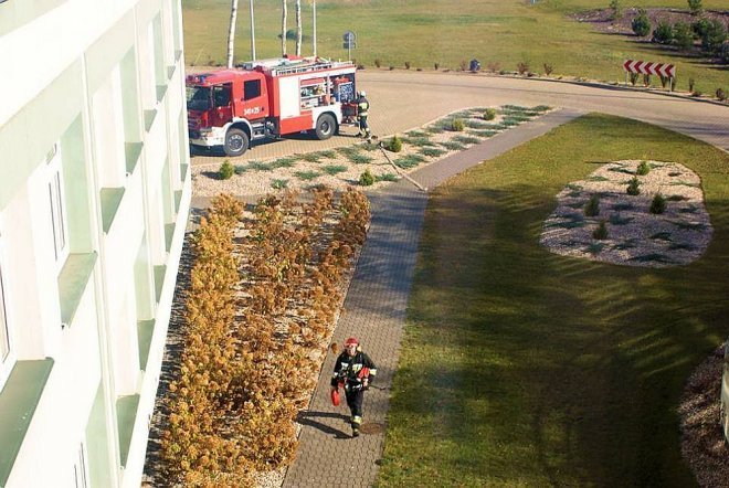 - Założeniem do ćwiczeń była symulacja pożaru w kuchni mlecznej na II piętrze bloku H na oddziale dziecięcym. W wyniku zadymienia jedna osoba została uwięziona w sali chorych. Personel dokonał ewakuacji wszystkich pacjentów, a strażacy, po ugaszeniu pożaru, przeszukali sale chorych w celu odnalezienia poszkodowanej osoby. Ewakuowano ją za pomocą drabiny mechanicznej – informuje Marta Kacprzycka, rzecznik prasowy ostrołęckiej straży pożarnej.
