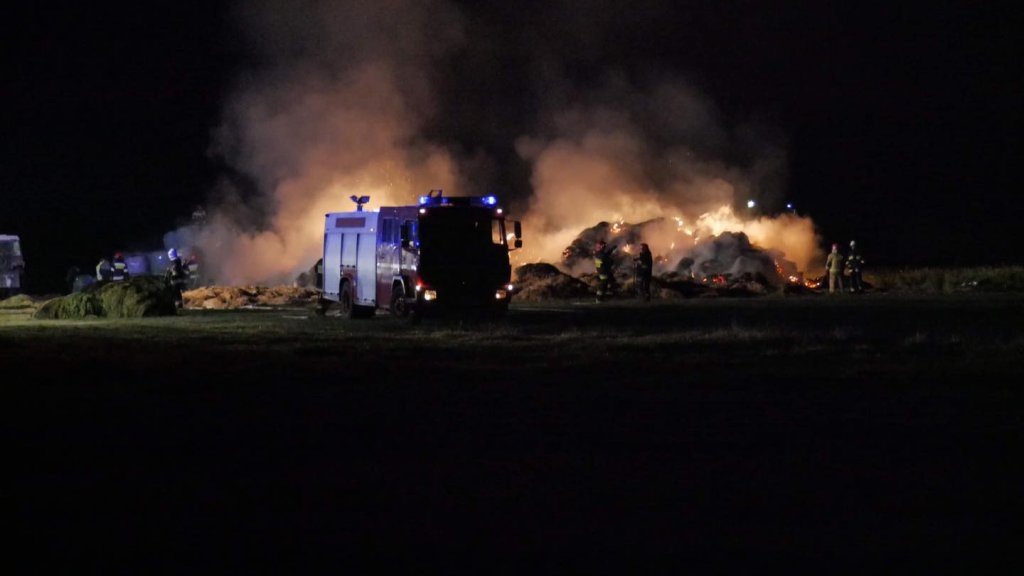 Pożar wybuchł w piątek, 4 listopada w miejscowości Czesin (gmina Wąsewo). Ogień trawił bele słomy. Z pożarem walczyło w sumie 10 jednostek zarówno zawodowej jak i ochotniczej straży pożarnej.