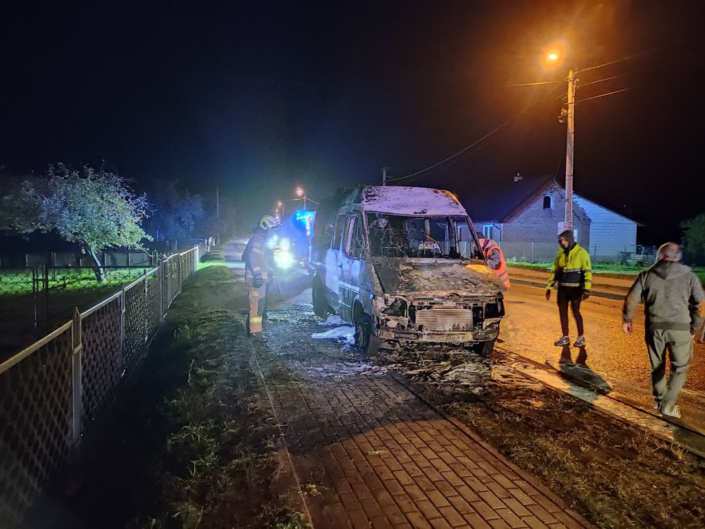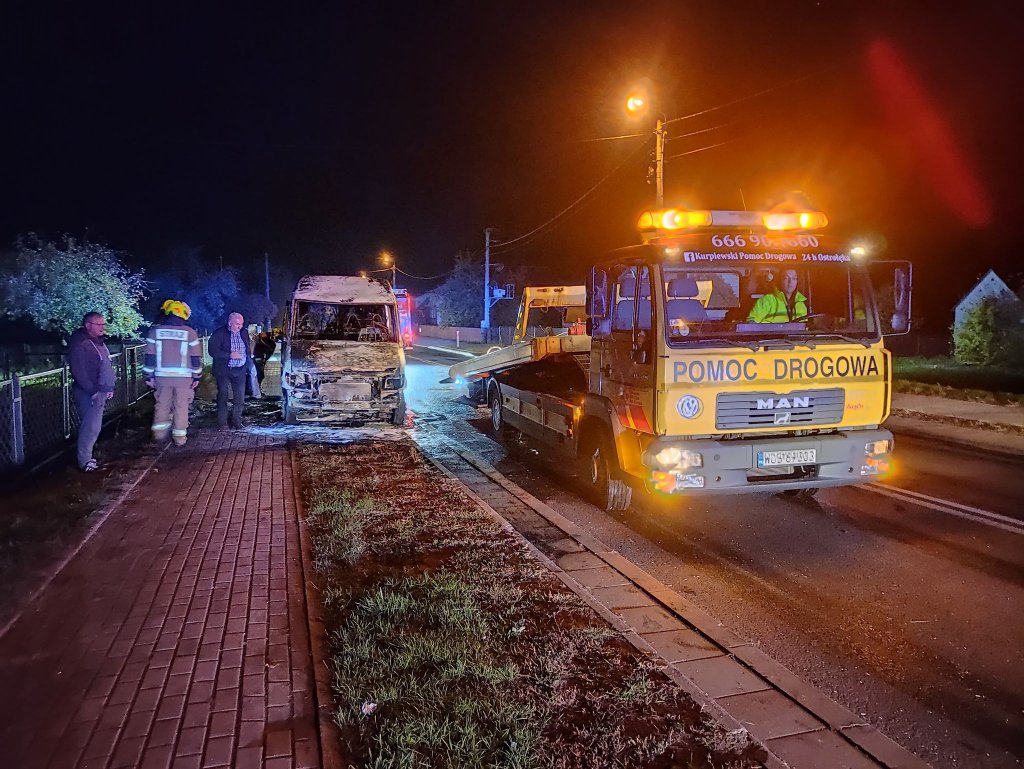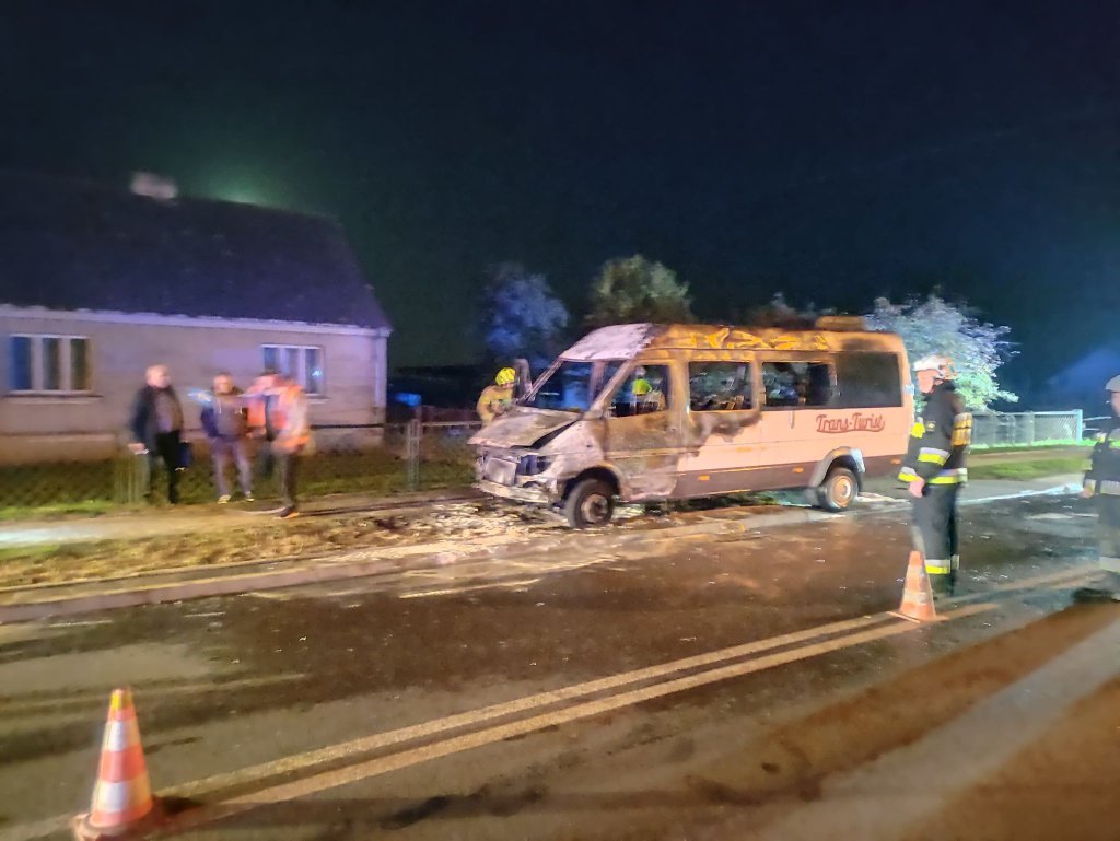 Bus marki mercedes sprinter został w wyniku pożaru poważnie uszkodzony.