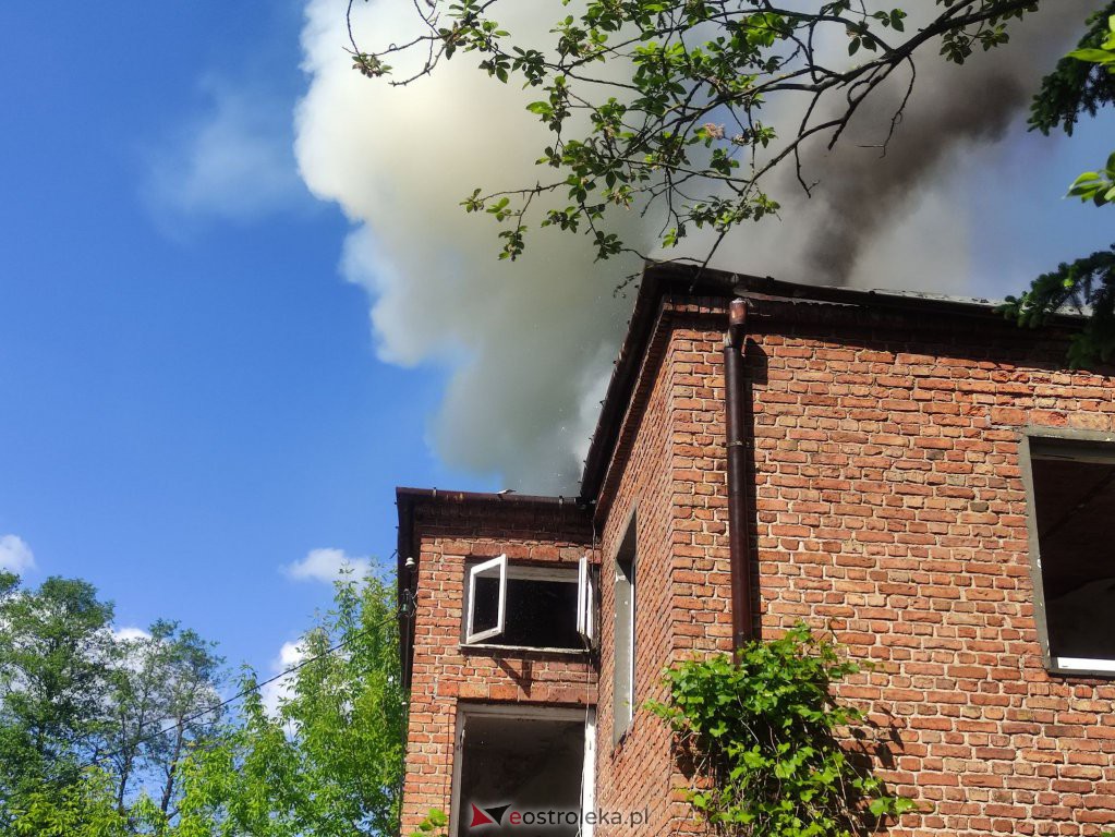 Przy ulicy Stefana Chomicza w Ostrołęce doszło dziś po południu do pożaru. Kłęby czarnego dymu unoszące się nad płonącym budynkiem widoczne były niemal w całym mieście.