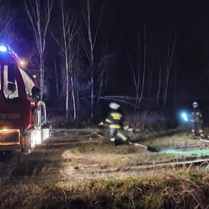- Po dojeździe na miejsce zastaliśmy drewniany budynek gospodarczy w całości objęty płomieniami. W pobliżu znajdowały się też dwa inne budynki – mieszkalny i gospodarczy. Nasze działania polegały na podaniu prądów wody na płonący budynek i w obronie na sąsiadujące zabudowania – mówi młodszy brygadier Robert Chodkowski, rzecznik prasowy Komendy Miejskiej Państwowej Straży Pożarnej w Ostrołęce.