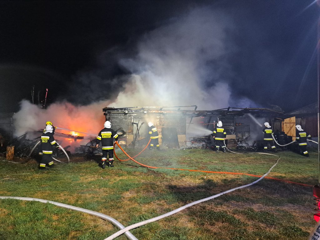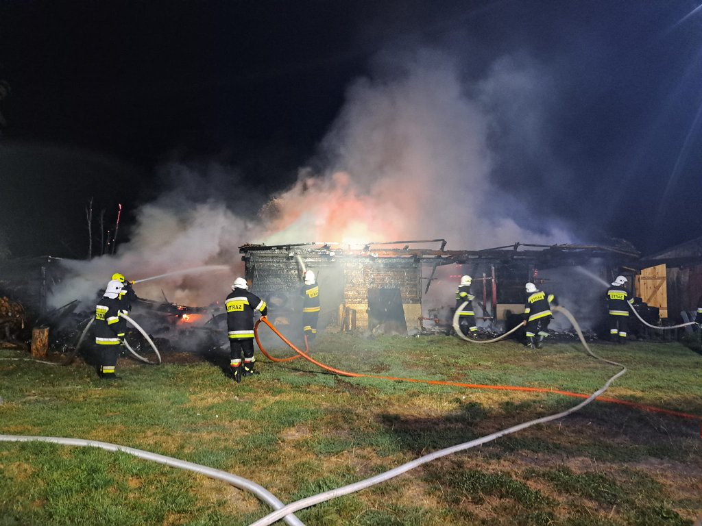 Pożar zauważono po godzinie 1:00 w nocy z niedzieli na poniedziałek. Ogień w całości obejmował już drewniany budynek gospodarczy wraz z przyległą wiatą, w której składowane było drewno opałowe.