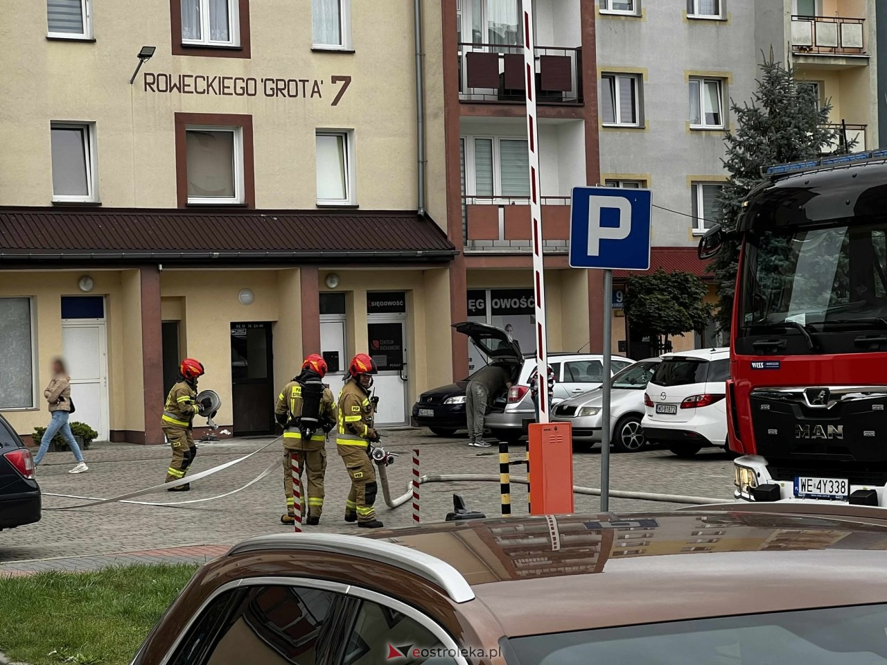 Dzisiaj przed południem w jednym z mieszkań w bloku przy ulicy Roweckiego "Grota" na osiedlu Centrum w Ostrołęce doszło do pożaru. Ogień pojawił się w jednym z mieszkań na piątym piętrze.