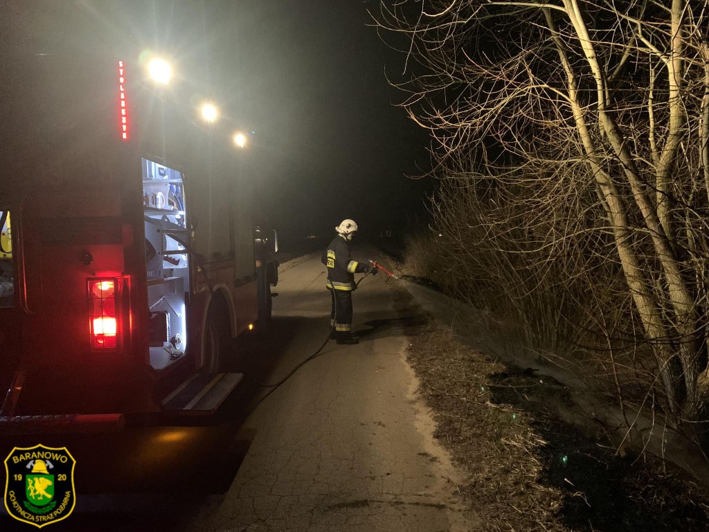 Zastęp strażaków ochotników z Baranowa prowadził akcję gaśniczą w miejscowości Jastrząbka, gdzie ktoś podpalił trawę na nieużytkach rolnych.
