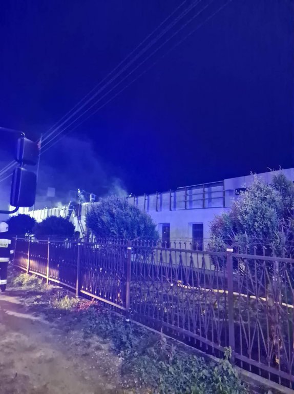 W wyniku rozpoznania stwierdzono, że pożar rozwija się pomiędzy stropem drewnianym budynku, a dachem wykonanym z blachy. Strażacy wykonali niezbędne prace rozbiórkowe konstrukcji dachu w celu zlokalizowania i całkowitego ugaszenia pożaru.