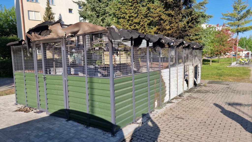 Wiata śmietnikowa przy ulicy Sikorskiego w Ostrołęce została postawiona około miesiąc temu. Nie stała jednak długo, bo w nocy z 8 na 9 maja doszczętnie spłonęła. Prawdopodobną przyczyną pożaru było podpalenie. Ostrołęccy policjanci zatrzymali dwie osoby, które mogą mieć związek ze sprawą.