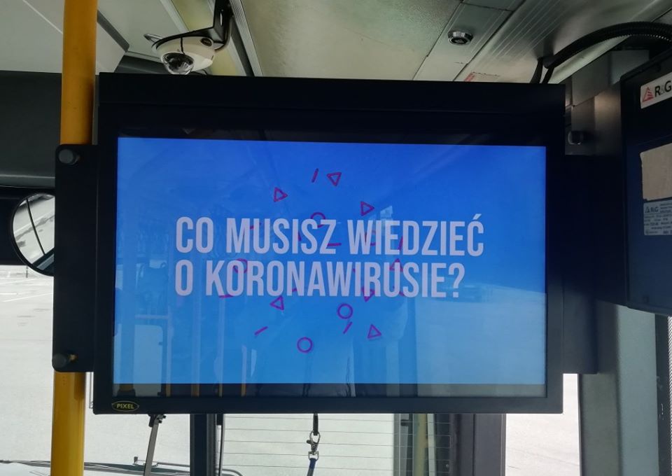 W związku z koronawirusem, w autobusach komunikacji miejskiej zostały umieszczone instrukcje z numerami kontaktowymi, gdzie należy dzwonić w razie wystąpienia zagrożenia lub podejrzenia zagrożenia. Dodatkowo na monitorach zamontowanych w pojazdach komunikacji miejskiej jest emitowany krótki film informujący m.in. o tym jak zapobiegać zakażeniu.