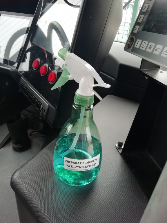 Codziennie, wyznaczony pracownik, wyposażony w maskę i kombinezon przeprowadza dezynfekcję autobusów. Dokładnie czyszczone są te miejsca, z którymi najczęściej mają styczność pasażerowie, czyli poręcze, barierki oraz siedzenia.