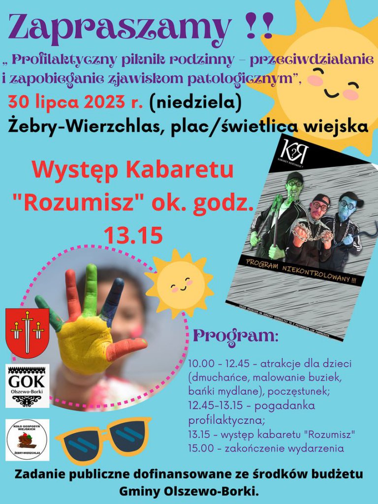 Koło Gospodyń Wiejskich Żebry-Wierzchlas zaprasza na "Profilaktyczny piknik rodzinny - przeciwdziałanie i zapobieganie zjawiskom patologicznym".
