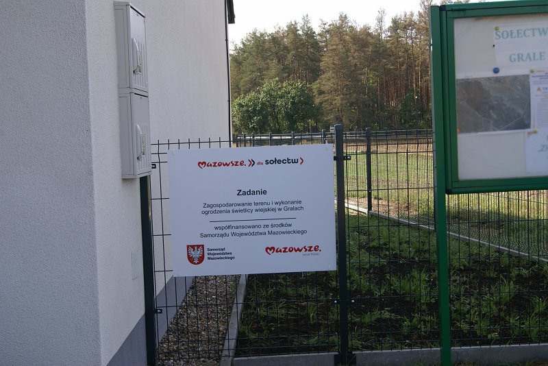 Z projektu realizowanego w ramach Mazowieckiego Instrument Aktywizacji Sołectw Mazowsze 2022 "Mazowsze dla sołectw 2022" wykonano ogrodzenie działki wokół świetlicy wiejskiej w miejscowości Grale. Zadanie obejmowało wykonanie ogrodzenia z paneli metalowych, cokół betonowy, dowiezienie ziemi oraz posianie trawy.