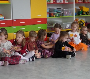 Głównym punktem programu były urocze występy dzieci z grup, które, ubrane w piękne stroje z jesiennym motywem, zaprezentowały swoje taneczne i wokalne talenty. Publiczność nagrodziła małych artystów gromkimi brawami.