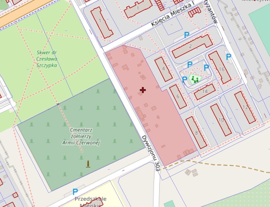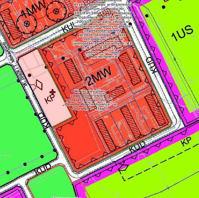 Miasto zaznacza również, że działka ta – zgodnie z obowiązującym od 2003 roku miejscowym planem zagospodarowania przestrzennego – przeznaczona jest właśnie pod zabudowę mieszkaniową wielorodzinną (2MW), parkingi (KP) oraz lokalną drogę gminną (KUL). Nie jest to więc teren, na którym plan dopuszcza funkcje parkowe czy ochronę zabytków.