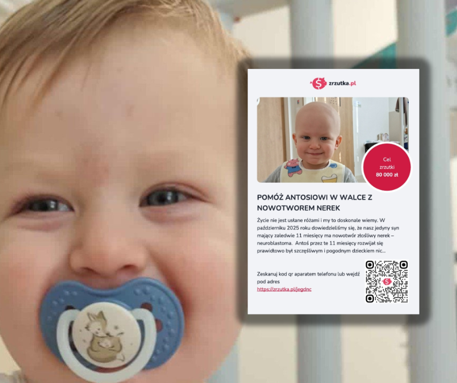 W serwisie zrzutka.pl ruszyła zbiórka na pomoc Antosiowi Zalewskiemu w walce z nowotworem nerek. Roczny chłopiec zmaga się z poważną chorobą - neuroblastomą.