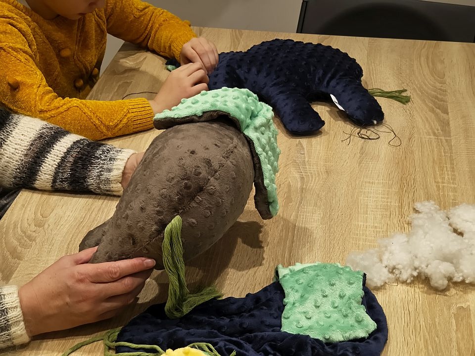 Podczas warsztatów rodziny mogły samodzielnie uszyć maskotki wzorowane na afrykańskich zwierzętach. Każdy uczestnik stworzył własną, unikalną przytulankę, która mogła stać się prezentem dla bliskiej osoby lub własną pamiątką ze spotkania.