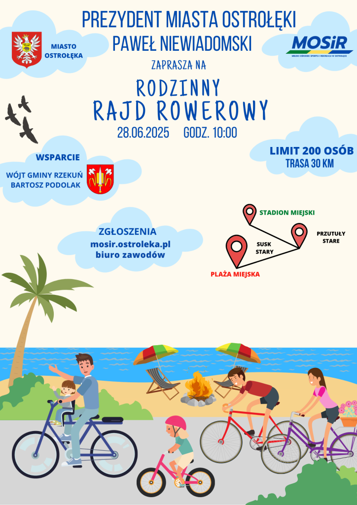Rodzinne Rajdy Rowerowe, organizowane przez Urząd Miasta i MOSiR w Ostrołęce, zyskały w poprzednich latach ogromne zainteresowanie i na stałe wpisały się w kalendarz lokalnych wydarzeń. Honorowy patronat nad wydarzeniem objął Prezydent Miasta Ostrołęki, Paweł Niewiadomski.