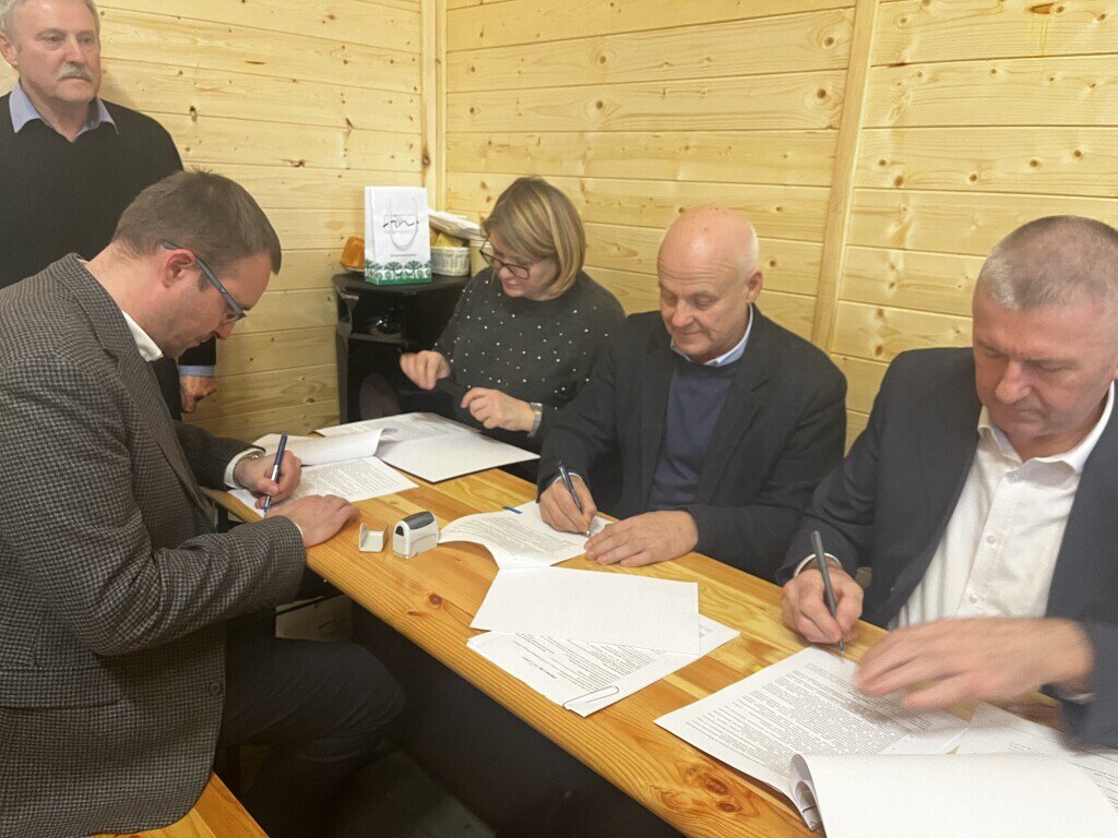 Umowa podpisana, czas ruszać do pracy. W miejscowości Zalas dopięto formalności związanych z realizacją inwestycji polegającej na rozbudowie drogi powiatowe z Myszyńca do Dud Puszczańskich.