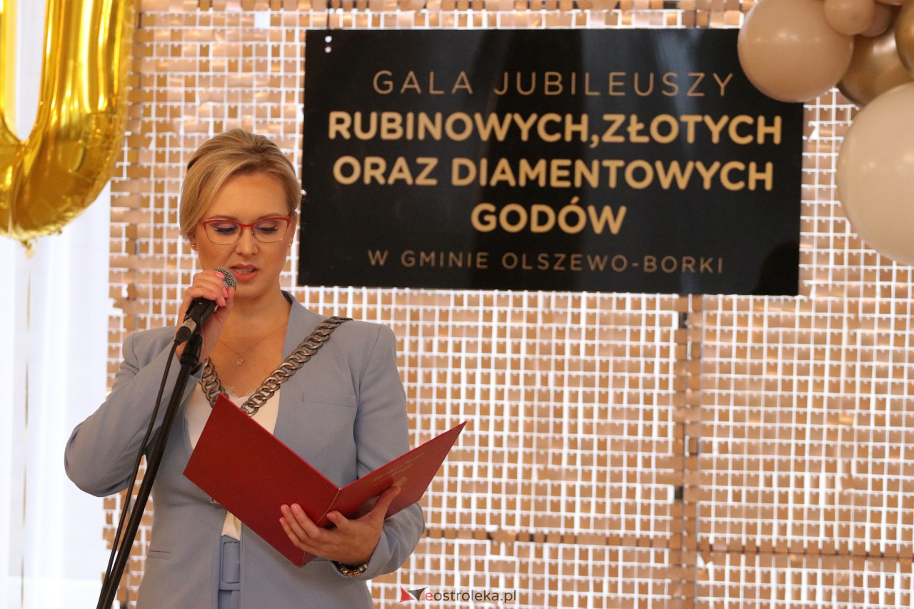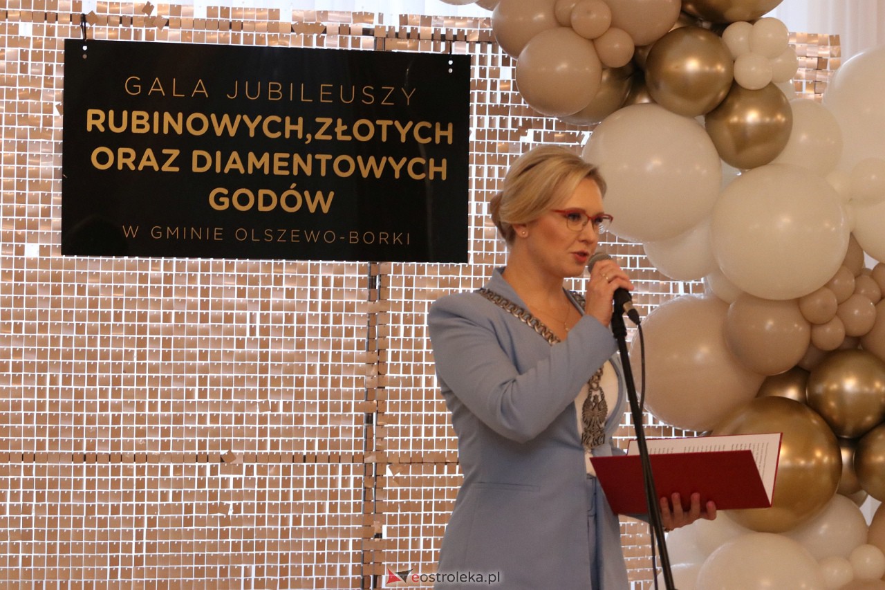 Gala jubileuszy rubinowych, złotych oraz diamentowych godów w gminie Olszewo-Borki była okazją do spotkania znajomych, ale też do wielu wzruszeń. Wójt Aneta Larent podkreśliła, że małżeństwa mające za sobą taki staż, mogą być wzorem dla młodego pokolenia.